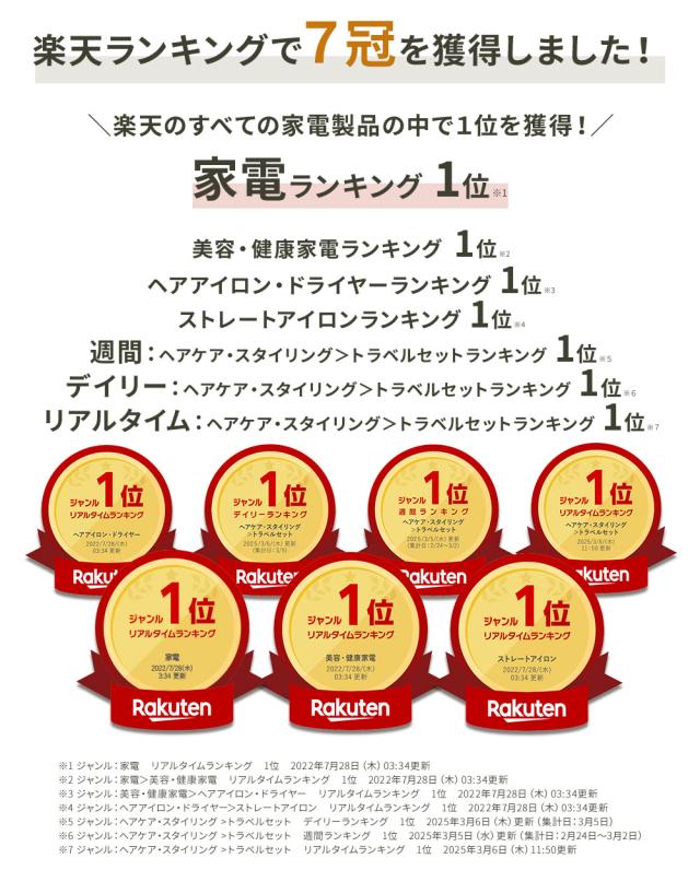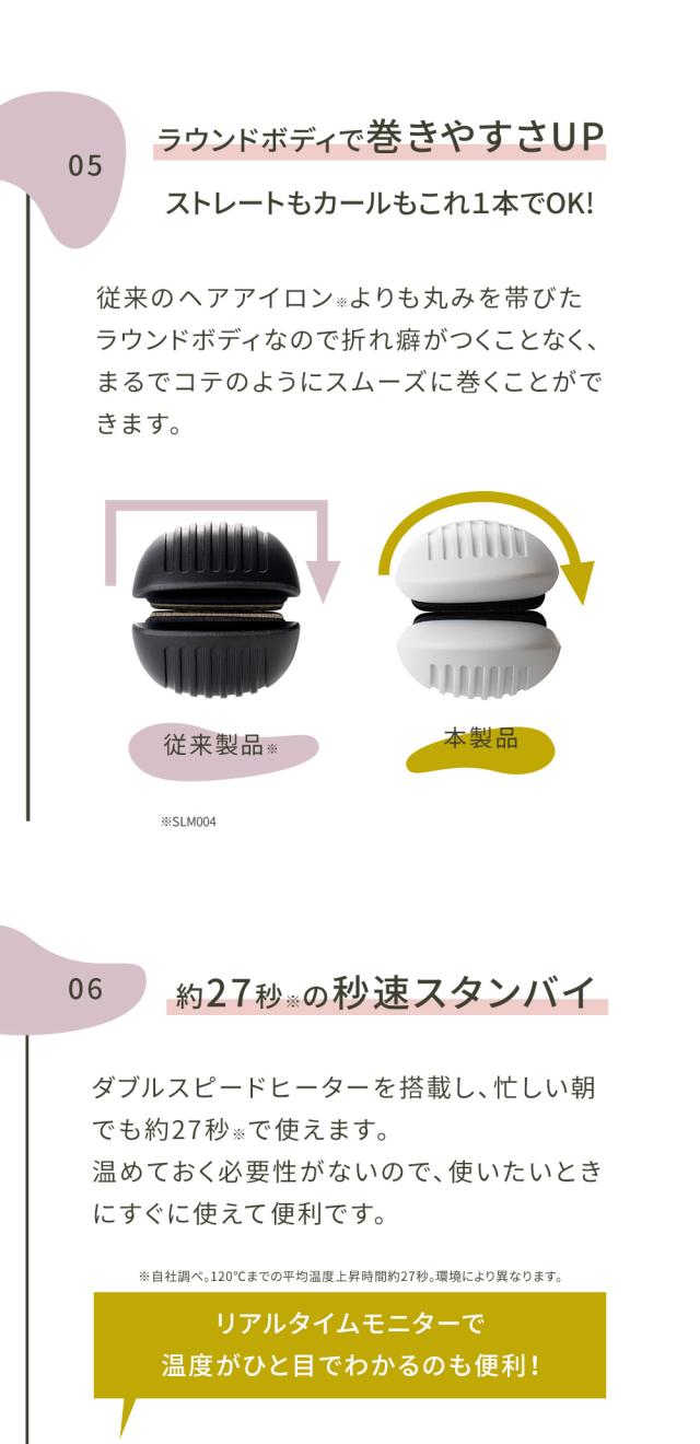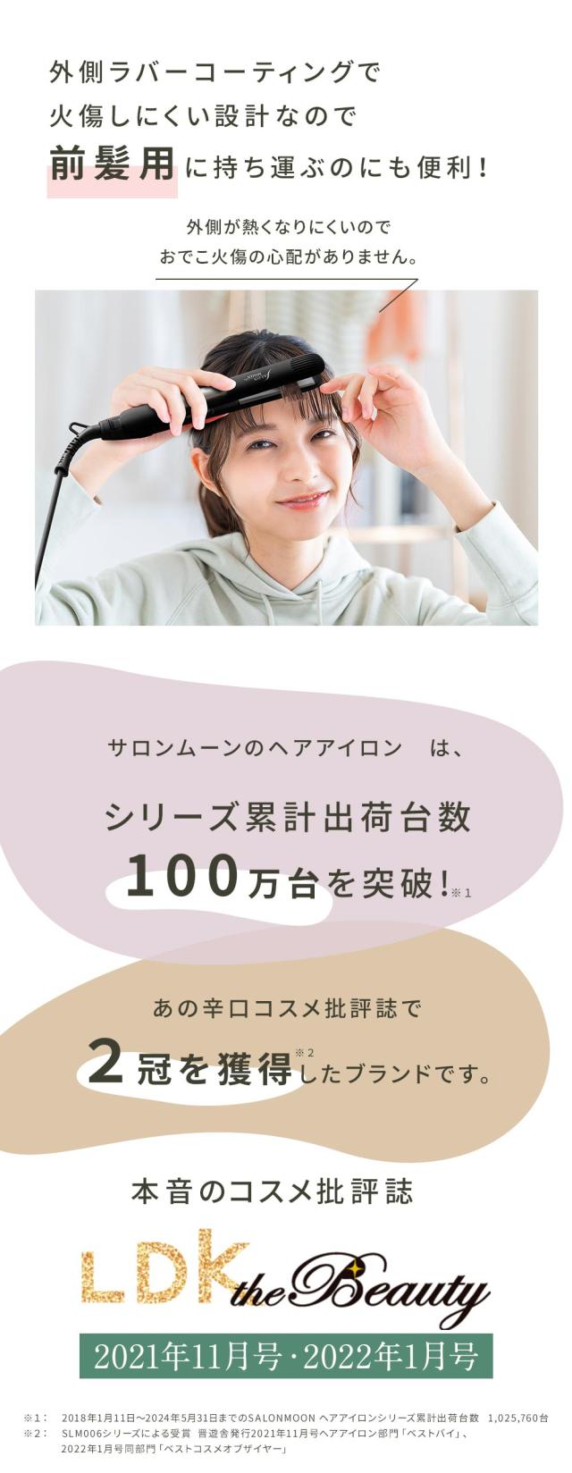 ※1:晋遊舎発行2021年11月号ヘアアイロン部門「ベストバイ」受賞2022年1月号同部門「ベストコスメオブザイヤー」受賞。SLM006シリーズによる受賞