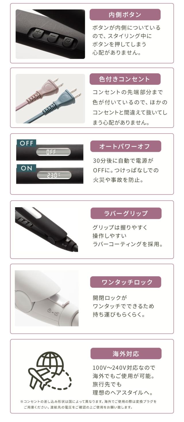 温度調整は 縮毛矯正レベルの230℃まで設定が可能 ( 80 〜 230 ℃ )。