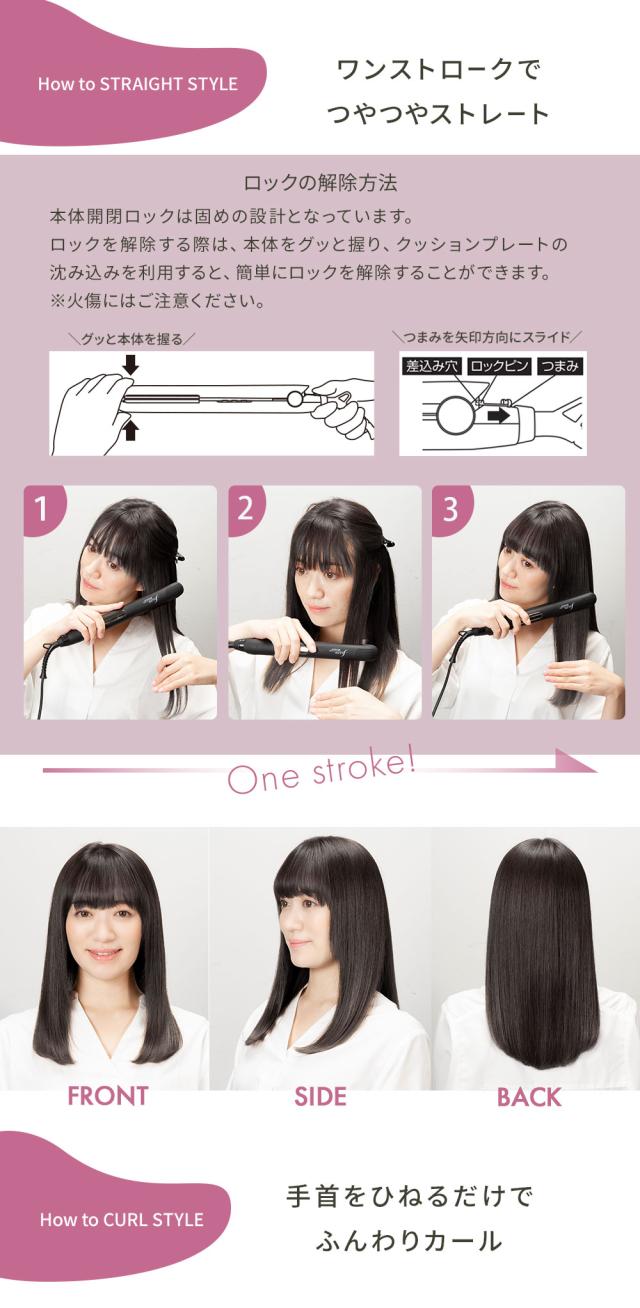 ストレート アイロン としてだけではなく 内巻き 外巻きウェーブ カール など まるで カール アイロン ( コテ )と 遜色なく使える 万能 ヘアアイロン です。