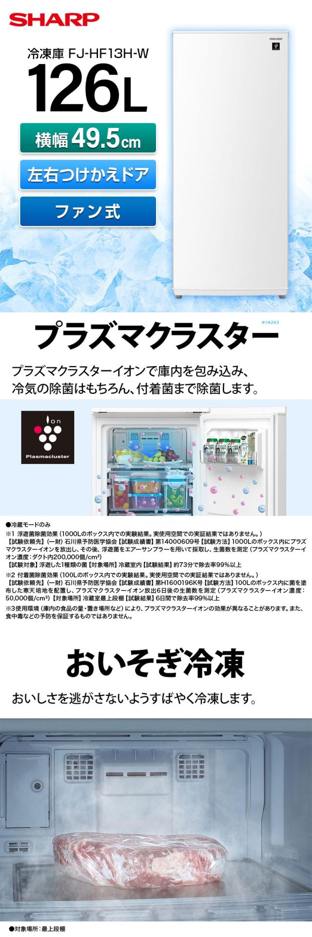 SHARP シャープ メーカー保証対応 初期不良対応 FJ-HF13H-W スノーホワイト 1ドア冷凍庫 つけかえどっちもドア 126L 幅495mm