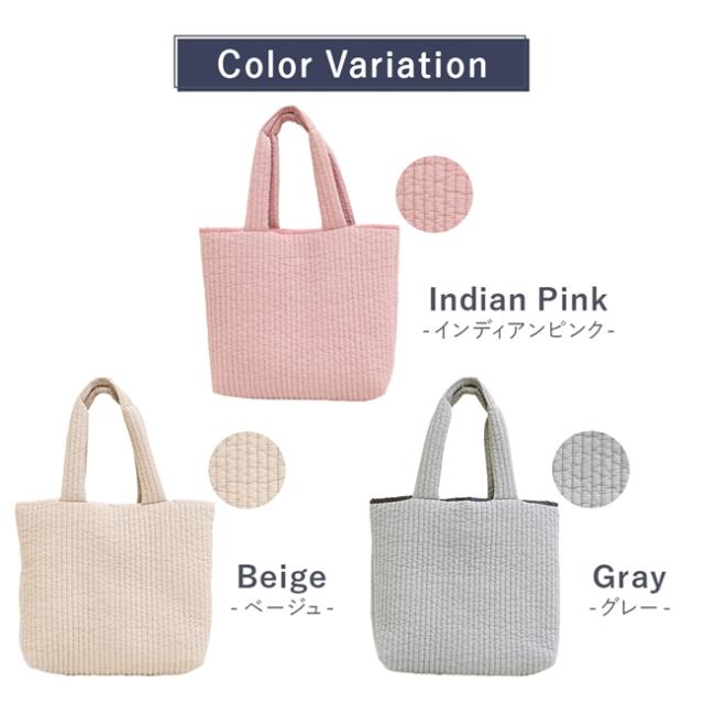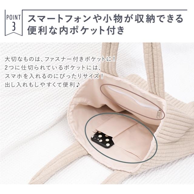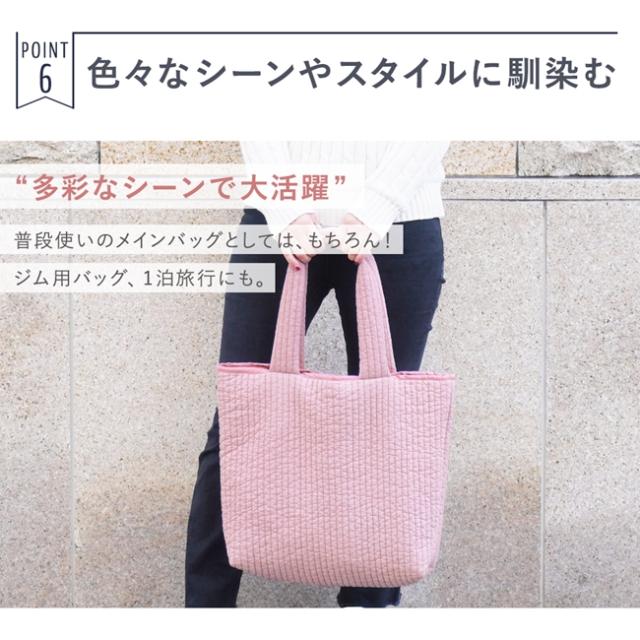 もこもこキルト生地で作られた『イブル トートバッグ』は、パッと目を引く可愛さ!
