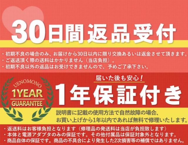 お届けから1年間の修理保証が付帯しております。説明書に記載の通りに使用されている場合のみ、保証の対象となります。