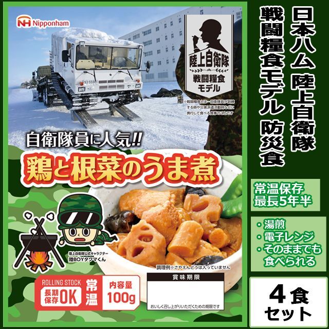 日本ハム陸上自衛隊戦闘糧食モデル防災食「鶏と根菜のうま煮」4食セット (非常食 長期保存 5年半 マツコの知らない世界 テレビ レトルト 食品 湯煎)