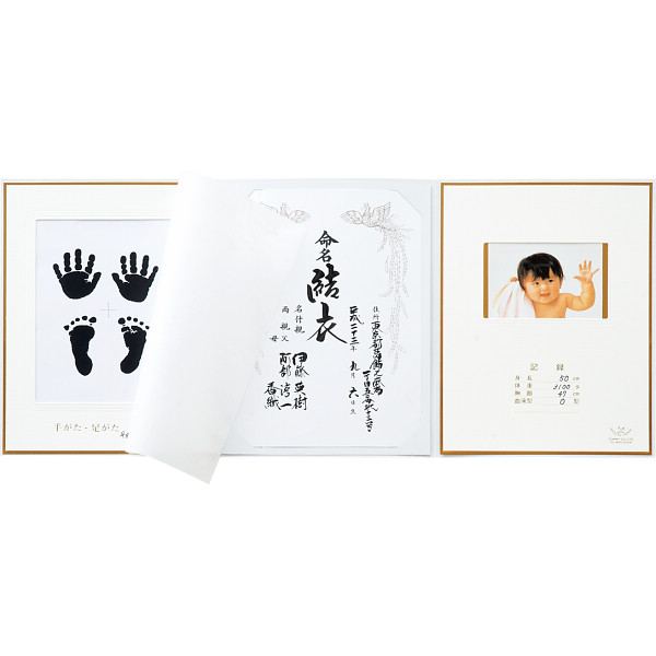 赤ちゃんの手形足形、写真額、命名、を一緒にいつまでも残すことができます。