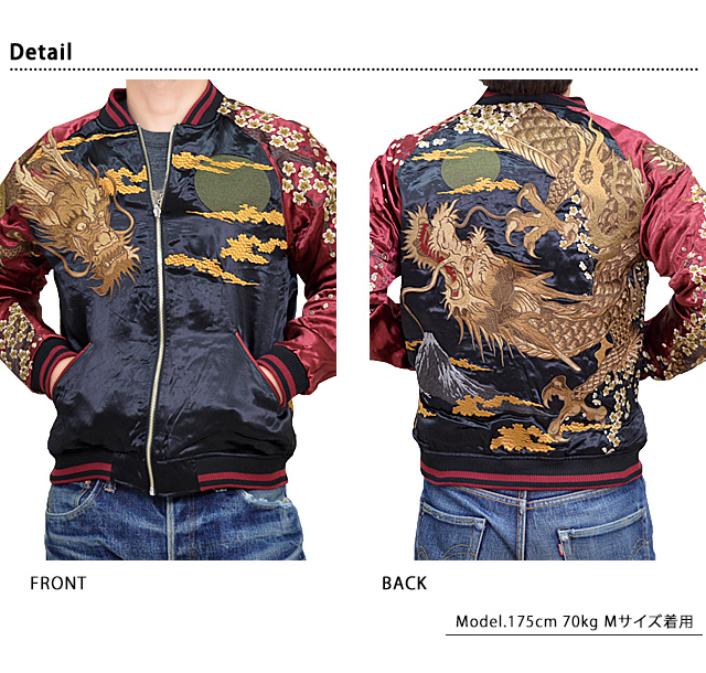 絡繰魂さんから「龍神降臨刺繍リバーシブルスカジャン(222015)」のご紹介です。 重みを感じる程の刺繍量が魅力的な絡繰魂から、最新作のスカジャンが登場しました。 今回モチーフの主役に採用されたのは、人気のある龍。 また、今回のスカジャンはリバーシブル仕様になっています。 ボディーにはレーヨンサテンを使用し、ドレープや陰影がくっきりと現れています。 | ||||||||||||||||||||