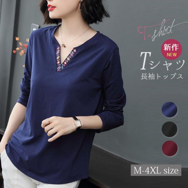 春新作Tシャツ 長袖 レディース トップス 無地 綿 シンプル カットソー ゆったり カジュアル