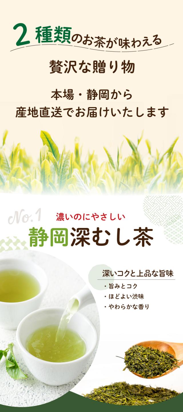 静岡深むし茶と特選ほうじ茶がたっぷり詰まった特別なギフト。
