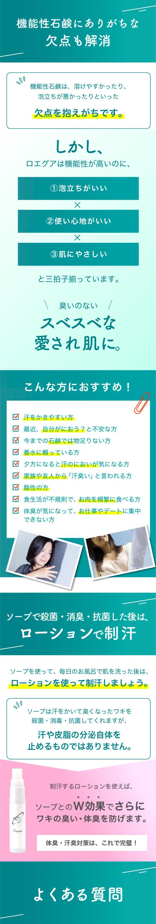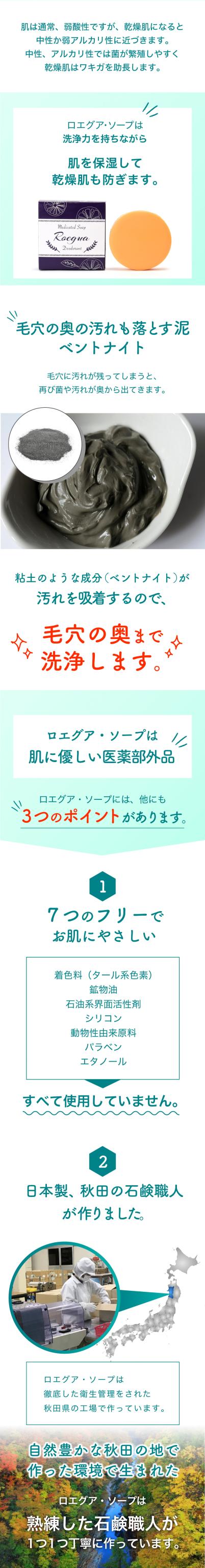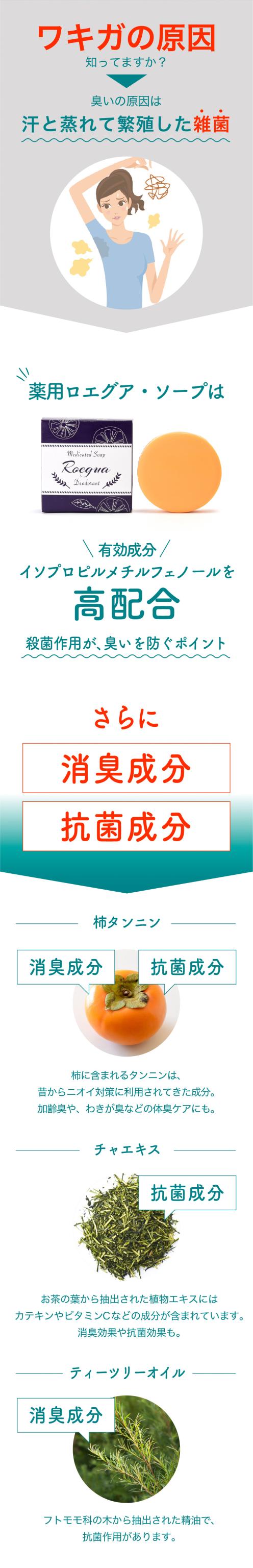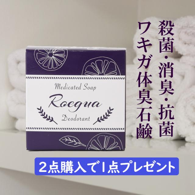 ワキガ 体臭 薬用 石鹸 ロエグア デオドラント ソープ 殺菌 抗菌 消臭 足の臭い 加齢臭 汗臭 足臭 肌に優しい メンズ レディース 兼用 80g 日本製 医薬部外品 送料無料