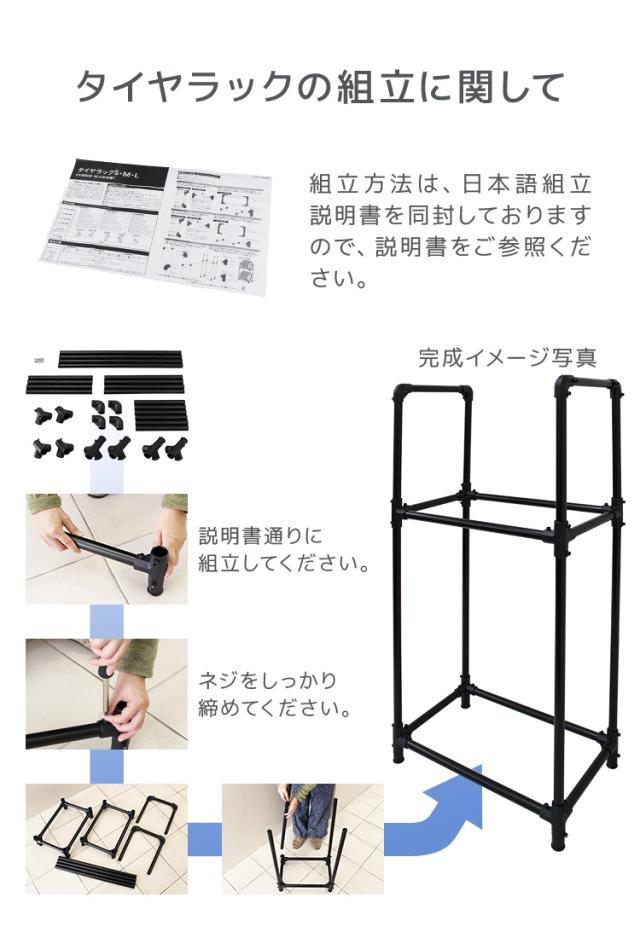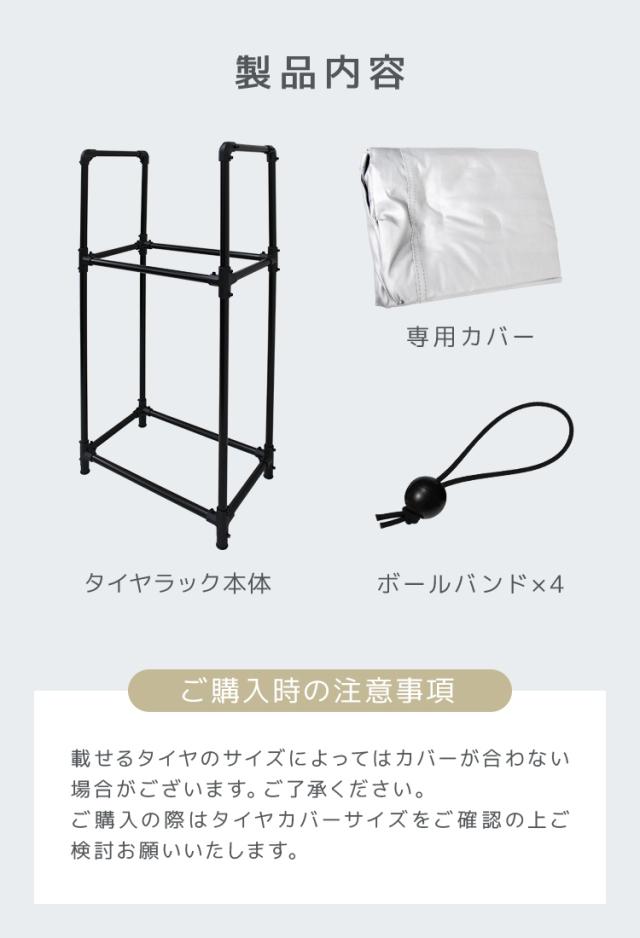 | 注意事項 | ・お客様組み立てになります。 ・適合サイズ以外・耐荷重を超える重量のタイヤをのせないで下さい。 ・商品は、モニターによって色合いが異なって見える場合があります。 ・仕様・サイズ・デザインは改良のため予告なく変更することがあります。 |