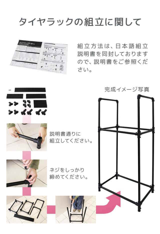 | 注意事項 | ・お客様組み立てになります。 ・適合サイズ以外・耐荷重を超える重量のタイヤをのせないで下さい。 ・商品は、モニターによって色合いが異なって見える場合があります。 ・仕様・サイズ・デザインは改良のため予告なく変更することがあります。 |
