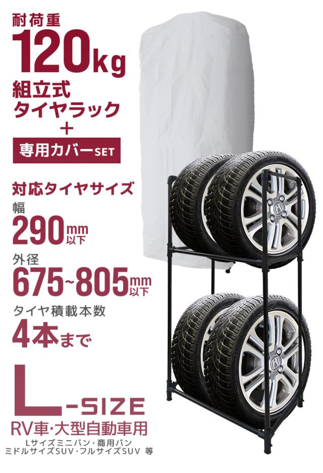 タイヤラック 4本 専用カバー付き カバー 収納 大型車 L タイヤ ラック 車 大きめ 4WD RV SUV タイヤ収納 収納ラック スタンド 倉庫 タイヤスタンド 送料無料