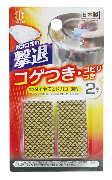 SDダイヤモンドパフ 薄型 コゲつき・コビリつき 4.8×2.5×厚み1cm 2個入 (100円ショップ 100円均一 100均一 100均)