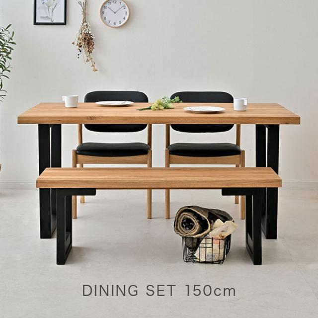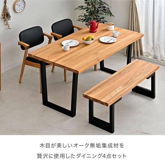 【オーク無垢材使用/脚間変更可能】ダイニング4点セット 幅150cm ARES(アレス) Aタイプ ダイニングテーブル ダイニングチェア ダイニングベンチ ダイニング テーブル 木製 おしゃれ ナチュラル