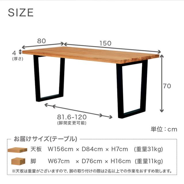 テーブル:約W150 x D80 x H70cm