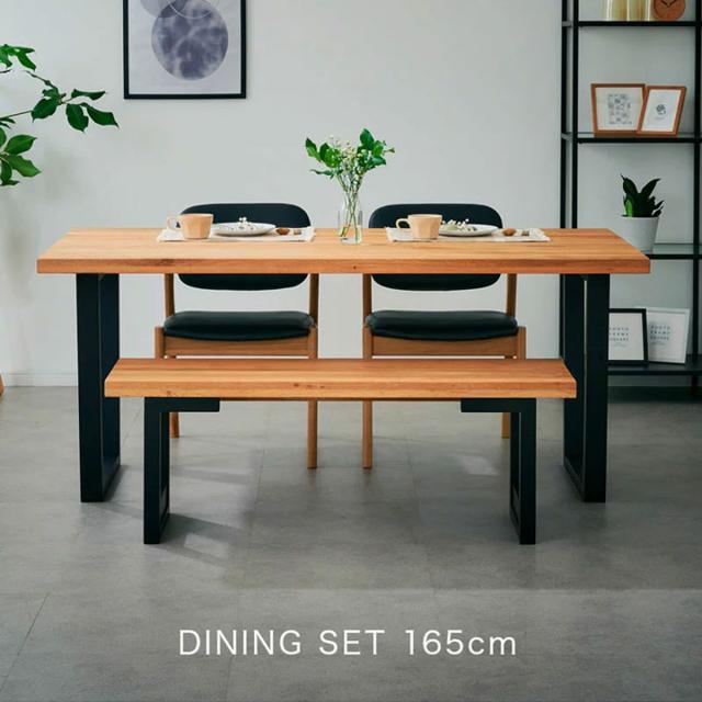 【オーク無垢材使用/脚間変更可能】ダイニング4点セット 幅165cm ARES(アレス) Aタイプ ダイニングテーブル ダイニングチェア ダイニングベンチ ダイニング テーブル 木製 おしゃれ ナチュラル
