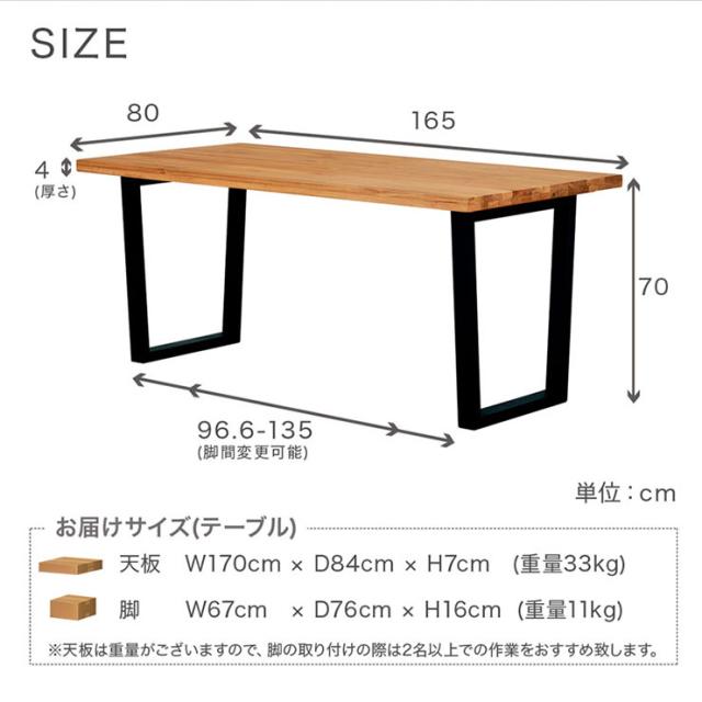 テーブル:約W165 x D80 x H70cm