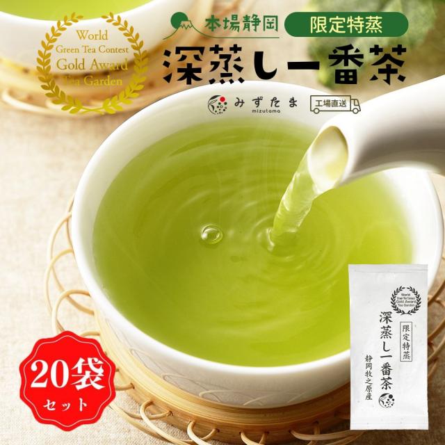 【20袋セット】限定特蒸 深蒸し一番茶 茶葉 各100g みずたま農園製茶場 お茶 緑茶 一番茶 深蒸し茶 煎茶 リーフ国産 静岡 静岡茶 牧之原 牧之原茶 無添加 日本茶 深むし茶 お買い得 お得 送料無料 セット 20袋 まとめ買い
