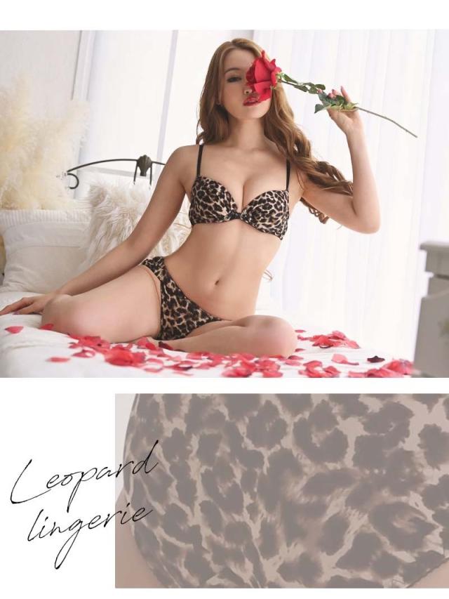 ☆大人女性の色気を醸し出してくれるヒョウ柄デザインに透け感のあるバックスタイルがとてもセクシーな2点セット♪