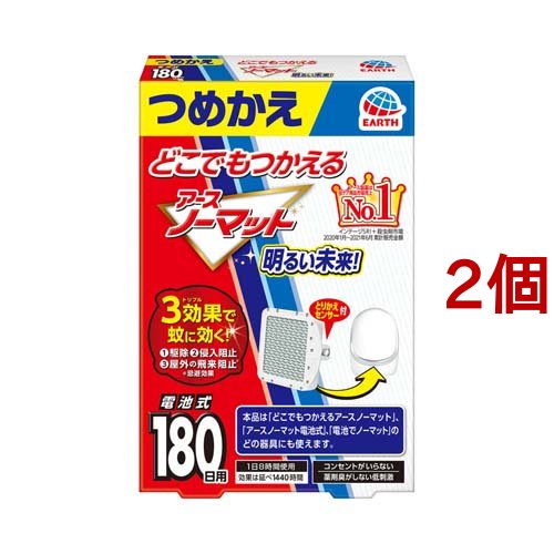 どこでもつかえる アースノーマット 180日用 電池式 蚊取り器 詰め替え用(2個セット)[殺虫剤 蚊]