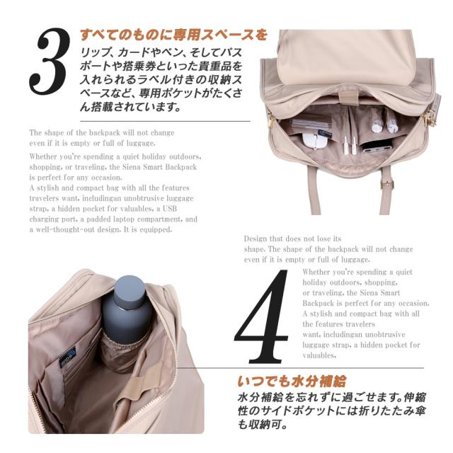 ●仕事から週末の旅の最中でも整理整頓できるように大量のスペースと考え抜かれたバッグ