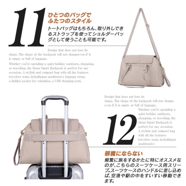 ボストンバッグ レディース ブランド ノルディス Nordace Leiden ND1093 10.5L 【正規輸入販売代理店】 敬老の日 USB充電ポート PC収納 13.3インチ 耐水 スマートボストンバッグ ビジネス 通勤 通学 旅行 タブレット ボトルポケット