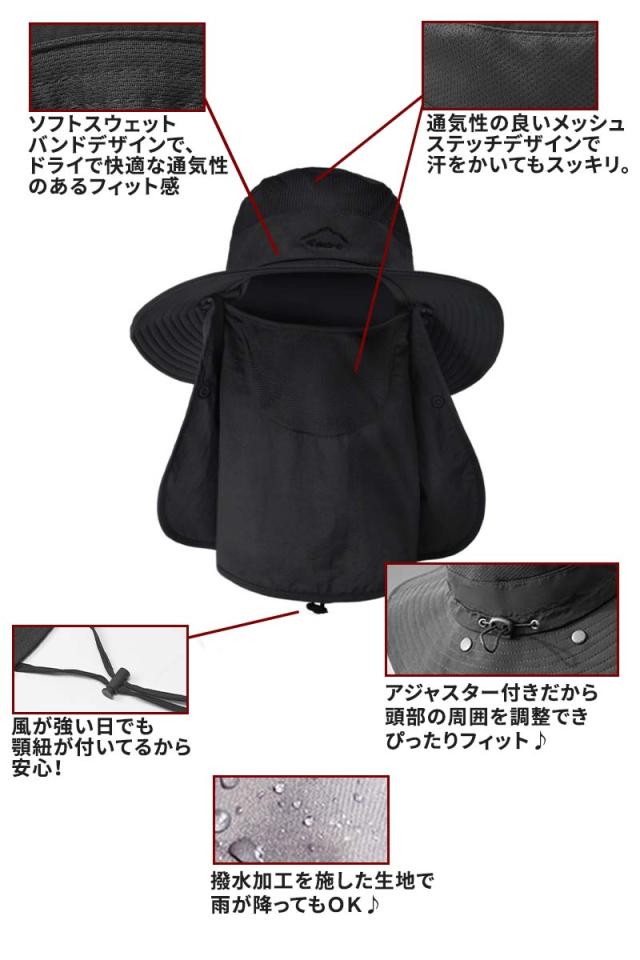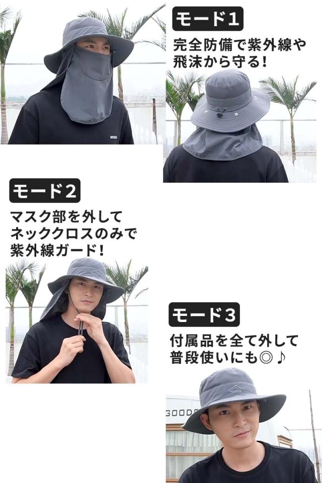 日焼け防止 マスク 帽子 釣り 自転車 首 フェイスマスク サンバイザー サファリハット つば広帽子 紫外線対策 飛沫防止 日よけ メンズ uv 折りたたみ 熱中症対策 UVカット ラッシュガード キャンプ フェイスカバー ネックカバー