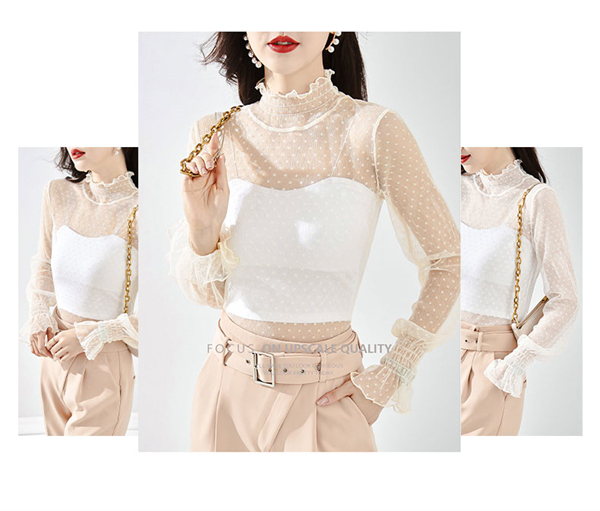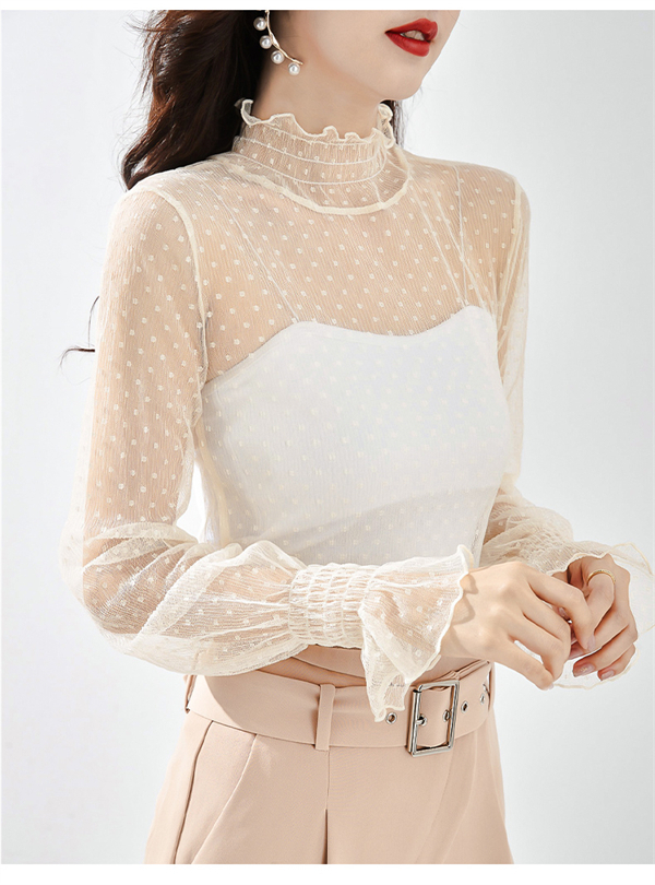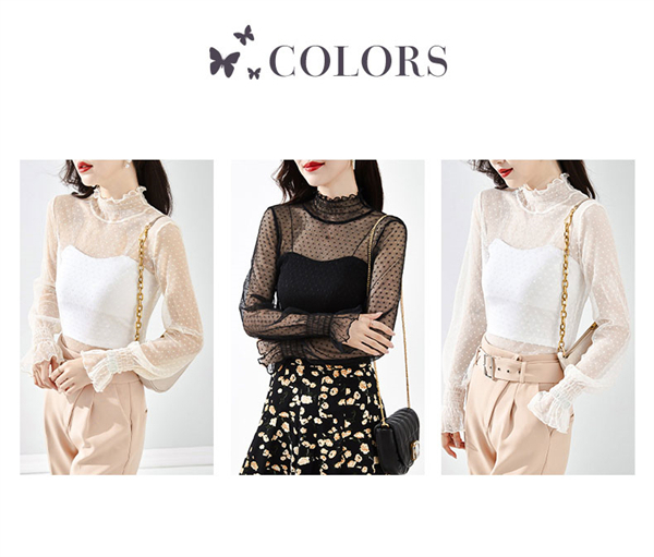 「2点セット トップスだけ」 総レース トップス 透け感 カットソー レディース インナー ハイネック タートルネック 春 重ね着 長袖 セクシー 薄手 ブラウス Tシャツ