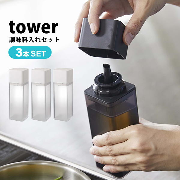 タワー 調味料入れ 3本セット おしゃれ 詰め替え用 調味料ボトル tower 調味料 収納 調味料ストッカー 調味料ケース おしゃれ 山崎実業