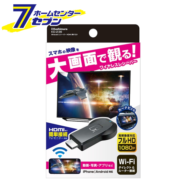 「カシムラ Miracastレシーバー HDMI 挿すだけ [品番]KD-236 」は株式会社ホームセンターセブンが販売しております。