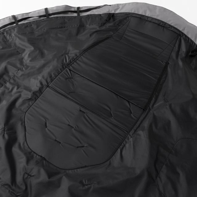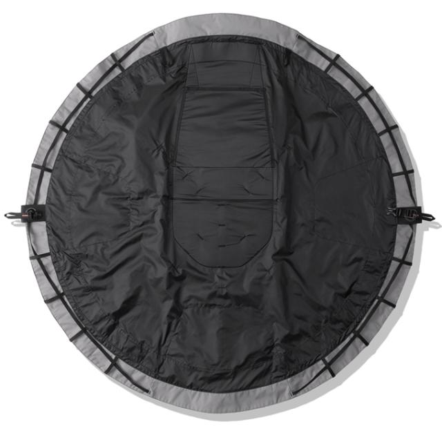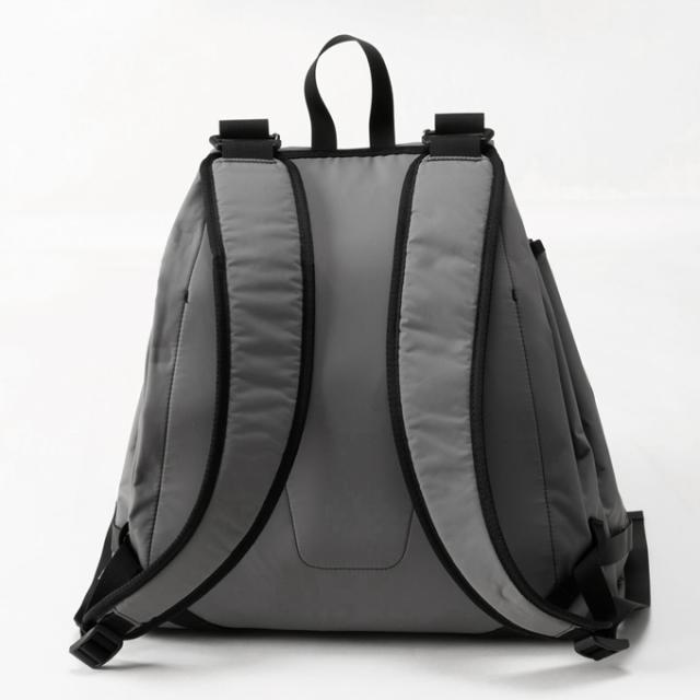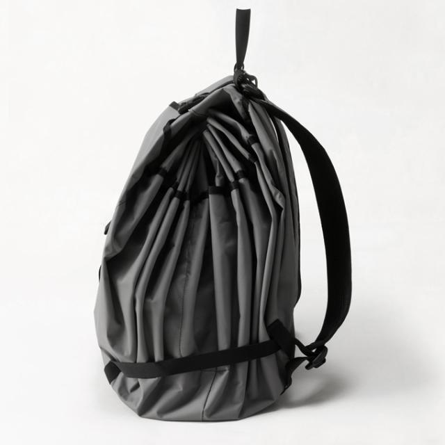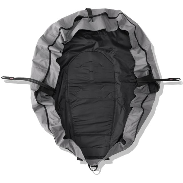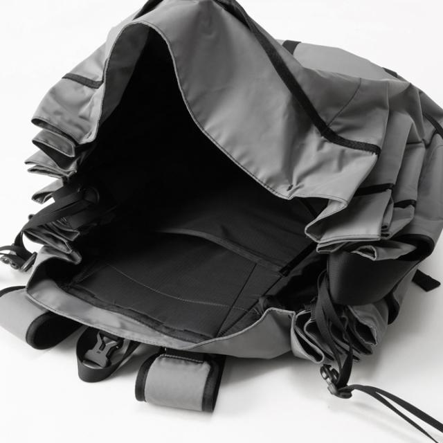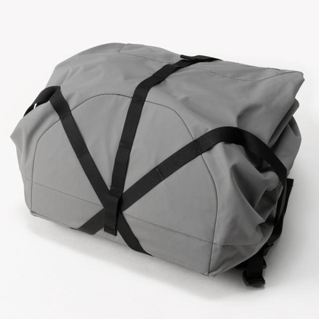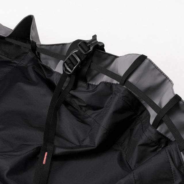 ショルダーハーネスは背負い心地を高めたパッド入りで、取り外しが可能。フロントポケットとサイドポケットに加え、内部背面側にスリーブポケットを装備。クライミングギアや買い物時のエコバッグとしてもマルチに使え、足場やグランドシートとしても活用できる、アイデア次第のユニークなプロダクトです。