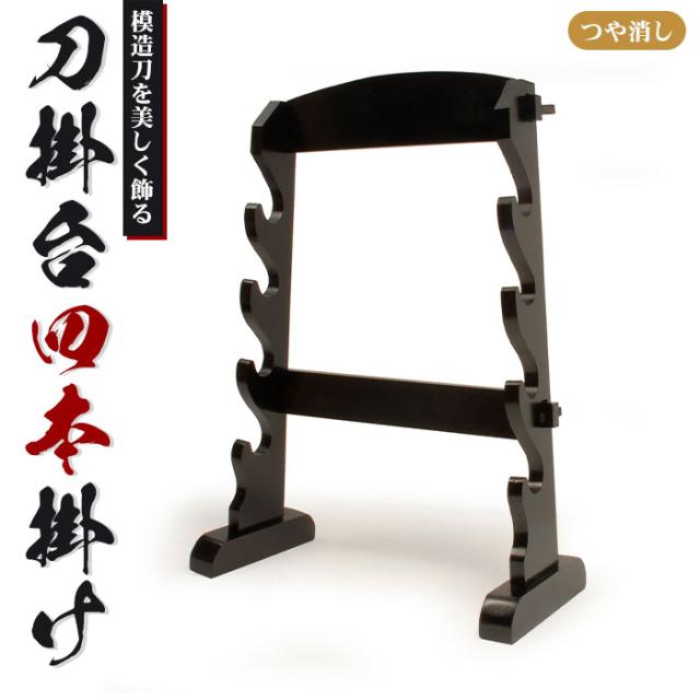 刀掛台 四本掛 据え置き 刀掛け 剣置き 幅(上)41 (下)51 奥行18.5 高さ61cm 天然木 つや消し 刀掛け 刀置き 刀台 据え 刀置台 刀掛け台 横置き 据置型 黒塗り 木製 模造刀 居合刀 刀 侍 剣 武器 お土産 おみやげ プレゼント 外国人 喜ぶ 時代劇 小道具 お芝居 稽古