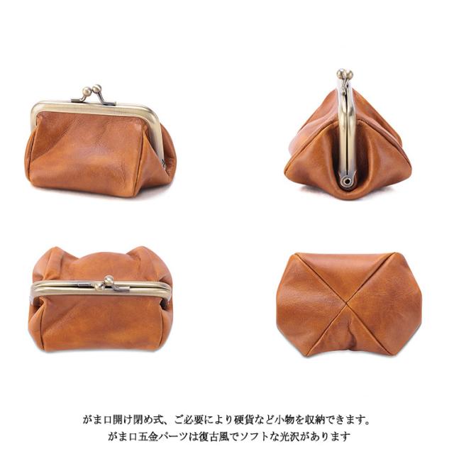 | スナップボタンはがま口の開け閉め式と合わせて、収納している物を一目瞭然、速やかに取り出せます。 がま口開け閉め式、ご必要により硬貨など小物を収納できます。がま口五金パーツは復古風でソフトな光沢があります。 牛革製で研磨、オイル、ワックス処理をされて、作られた特殊革質感効果の財布です。 カード、お札と硬貨を入れても、手心で持てられるサイズで、すぐ必要な物を取り出せます。 | |