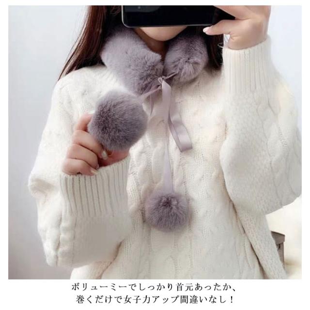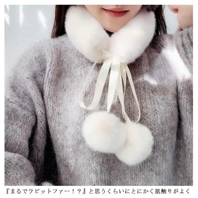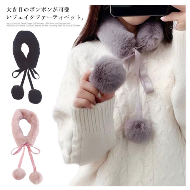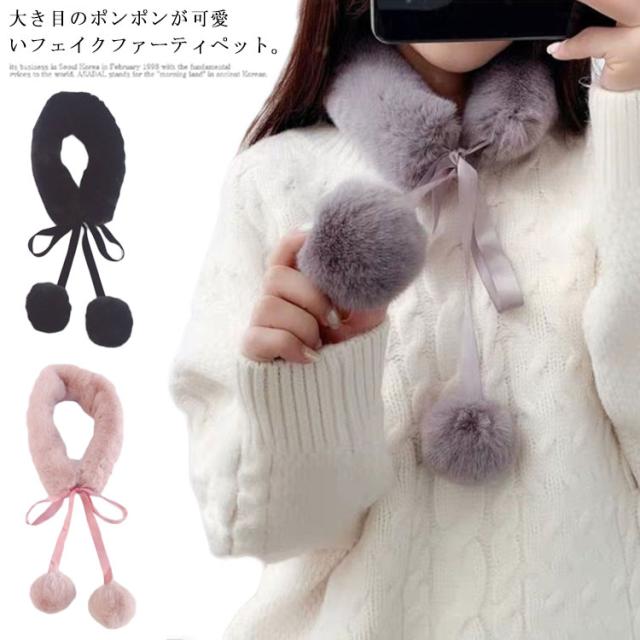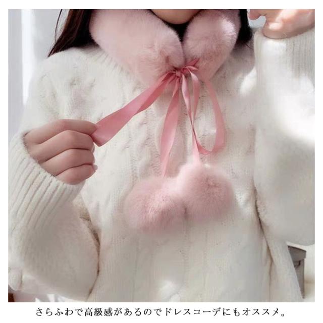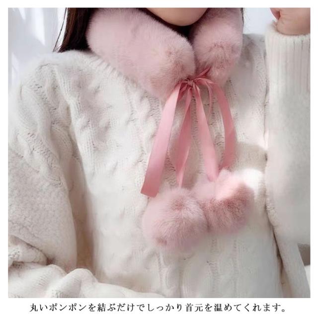 送料無料 ファー マフラー 女子 フェイクファー マフラー エコファー ストール ボリューム ネックウォーマー ポンポン あたたかい ふわふわ ふんわり もこもこ 暖かい 柔らかい