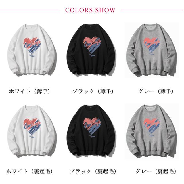 | 長シーズン使用できるオシャレなカップルトレーナー クラシックのブラック?ホワイト?グレー、どんな服にも合わせて、着回し力抜群! シンプルなデザインなので、ペアルックに抵抗がある方でも着やすくなっております。 ペアルックだけでなく、普段のカジュアルスタイルにピッタリです。 薄手?裏起毛2種類を用意して、長いシーズンを着用できます! | |