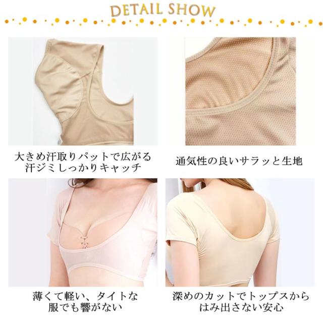 脇汗 汗取りインナー レディース 送料無料 脇汗 インナー 半袖 汗染み防止 ワキ汗 汗取りパット付 ショート丈 吸収 汗対策 脇汗 対策 グッズ わきが対策 春 夏 秋 繰り返し