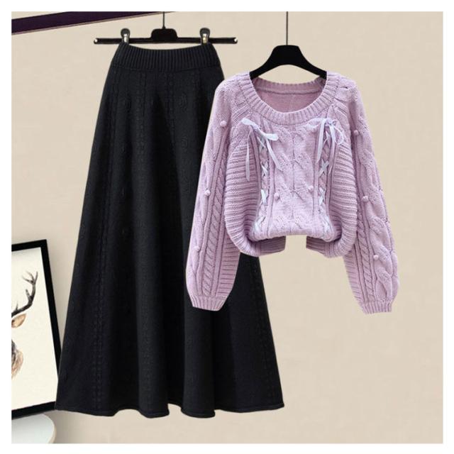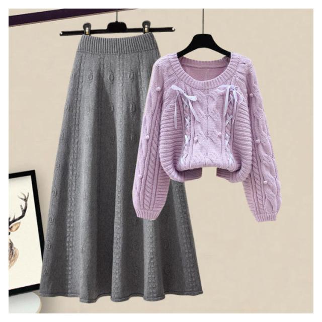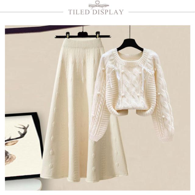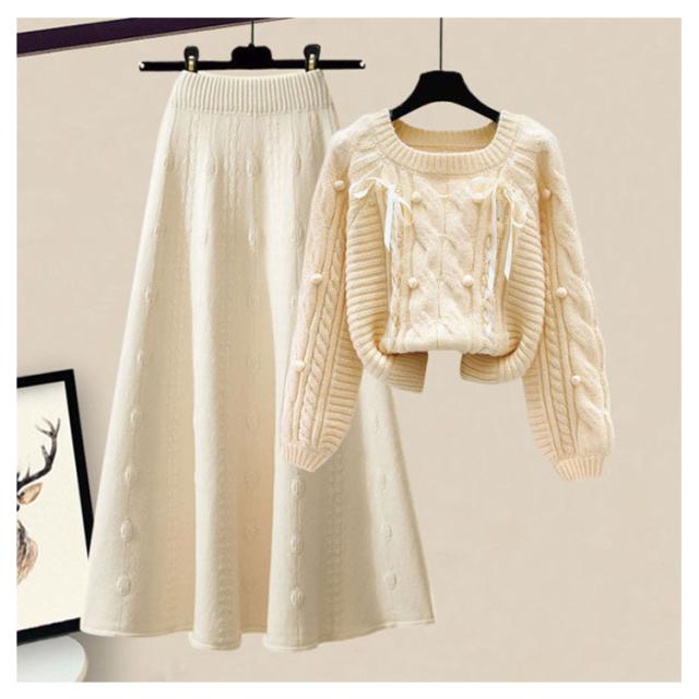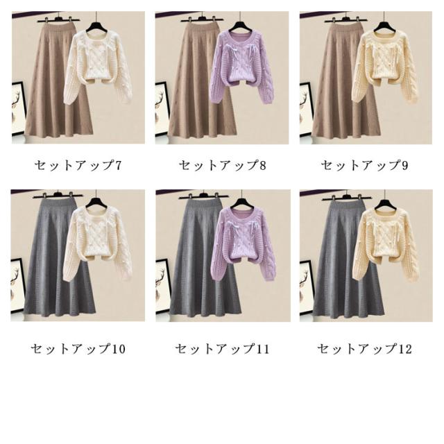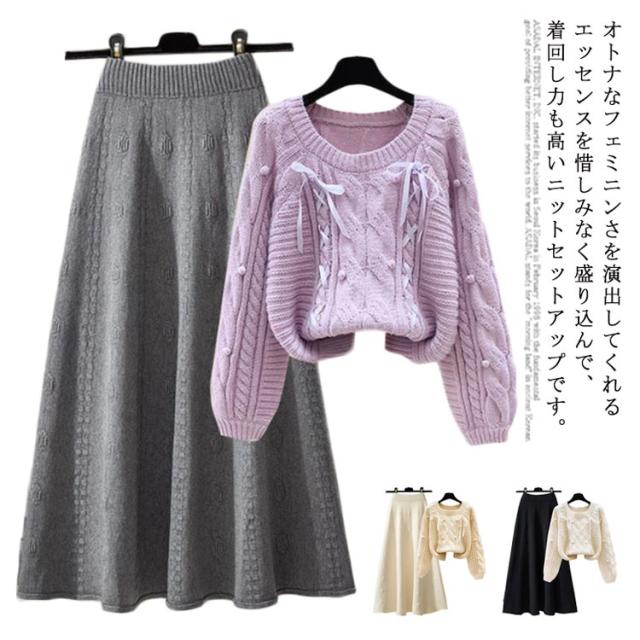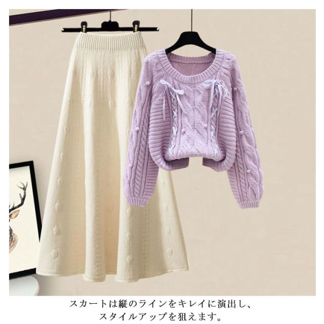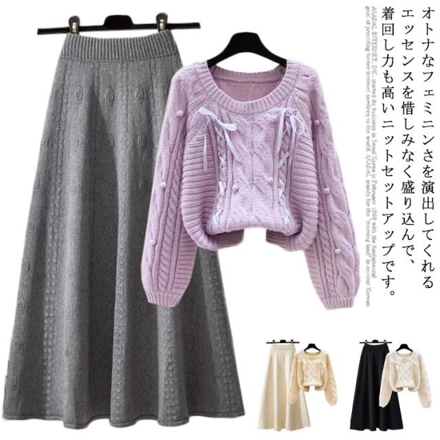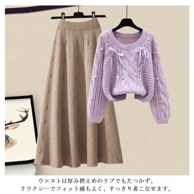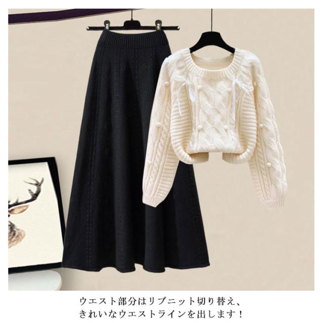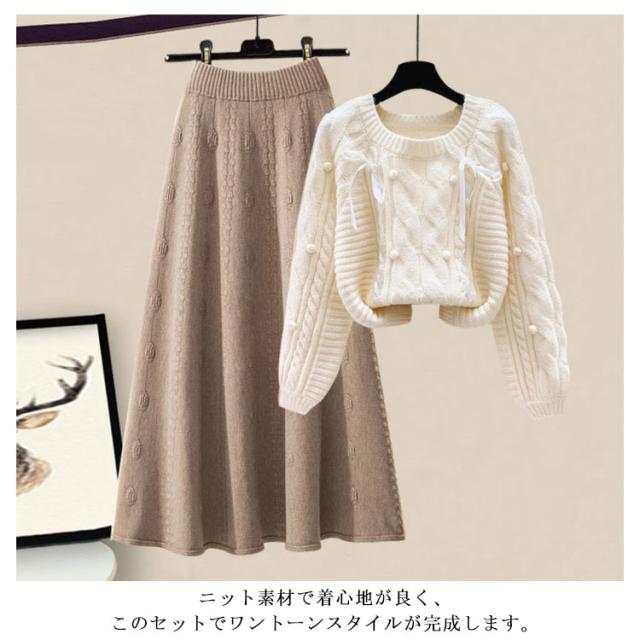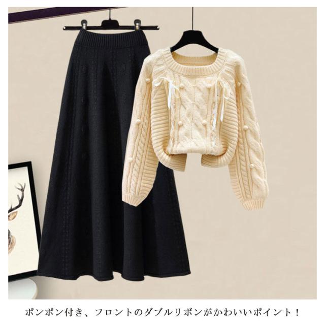 セットアップ レディース ニットセットアップ レディース カジュアル スカートスーツ ニットセットアップ 大きいサイズ レディース 秋冬 セーター ポンポン付き ニットスカート ロングスカート お呼ばれ 大きいサイズ 体型カバー M L XL 2XL 3XL 4XL