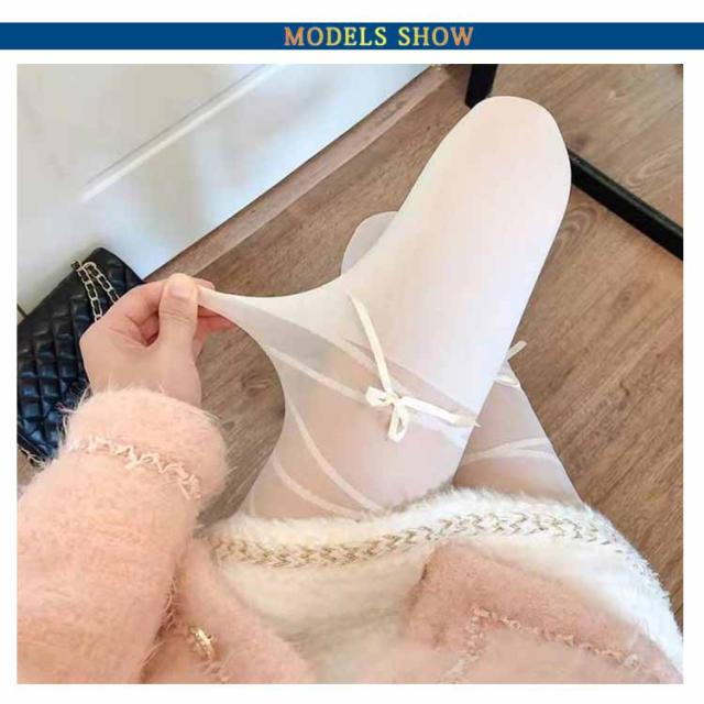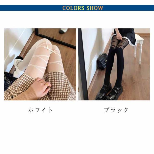 【送料無料】可愛いリボンストッキング ストッキング 白ストッキング 黒ストッキング オールスルー パンスト セクシー タイツ 着圧ストッキング 着圧 弾性ストッキング リボンタイツ タイツ 黒タイツ リボ