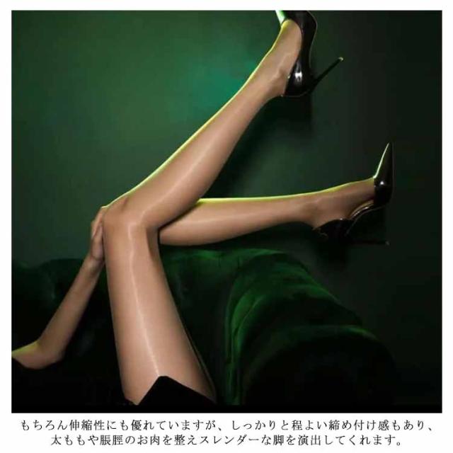| 足を華やかに見せる光沢ストッキング ♪ 光沢があり程よく透けた素材で、ぱっと相手の目を引くのは間違いなし。 もちろん伸縮性にも優れていますが、しっかりと程よい締め付け感もあり、太ももや脹脛のお肉を整えスレンダーな脚を演出してくれます。 | |