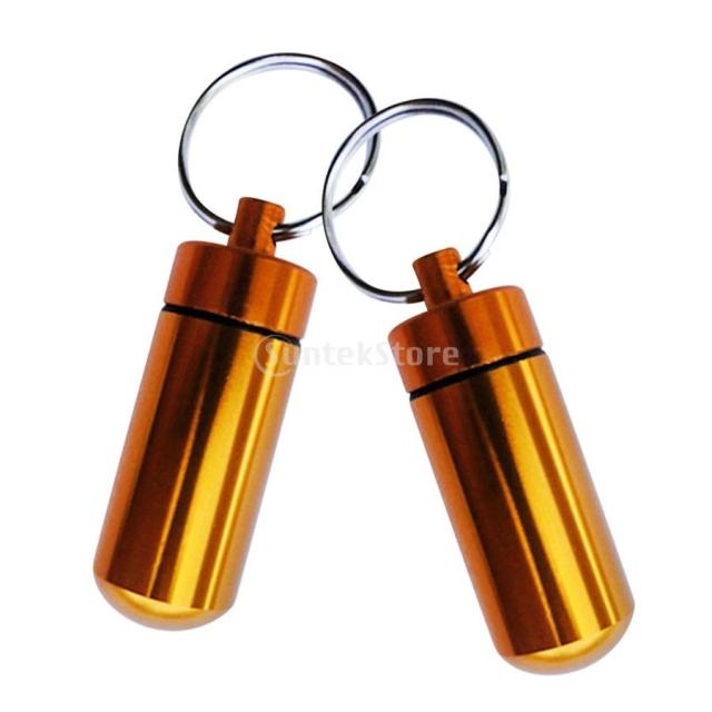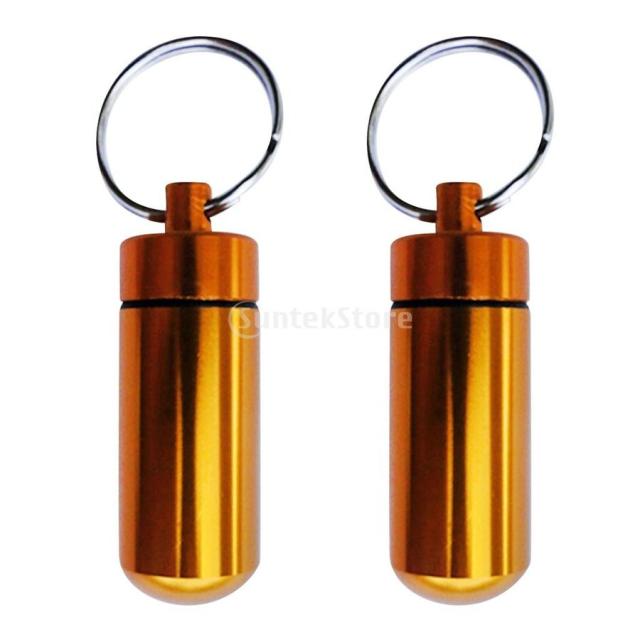 ノーブランド品 全3色 2個 防水 気密性 ピルボックス 錠剤ケース カプセル ホルダー キーリング キーチェーン - ゴールド