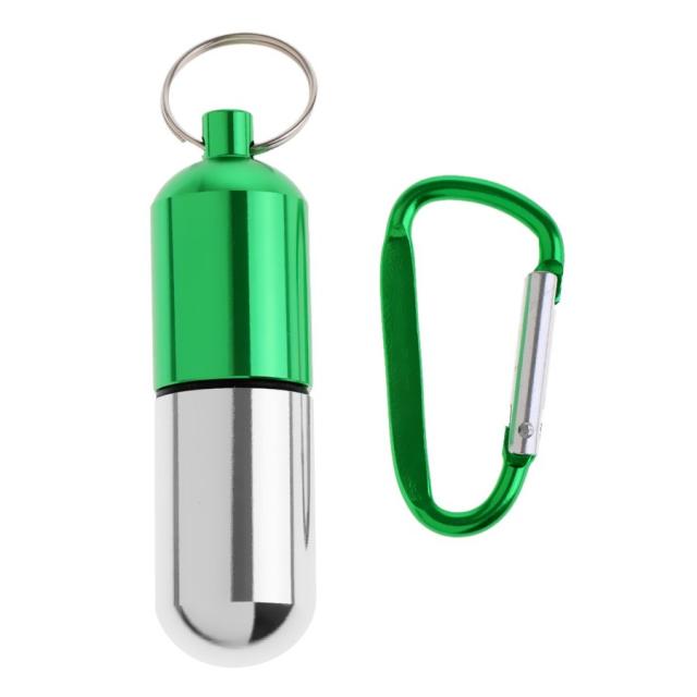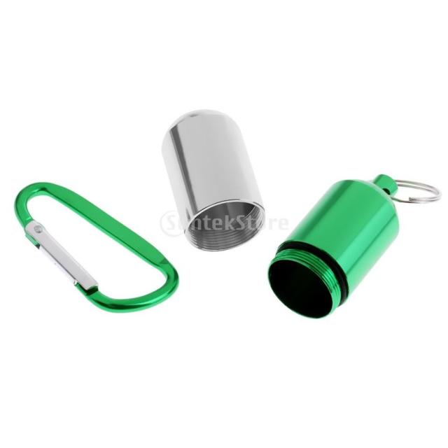 アルミニウム 防水 ピルボックス カプセルホルダー コンテナ ピルケース カラビナ キーリング キーホルダー 全3色 - 緑