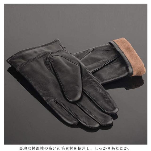 【送料無料】手袋 メンズ レザー 防寒 ビジネス グローブ 男性用 レザー あったか 裏起毛 皮手袋 紳士 皮 革 ブラック 黒 通勤 通学 自転車 バイク 防風性 サイクリング 5本指 お出かけ 暖かい ギフト 父の日 バレンタイン 誕生日 プレゼント