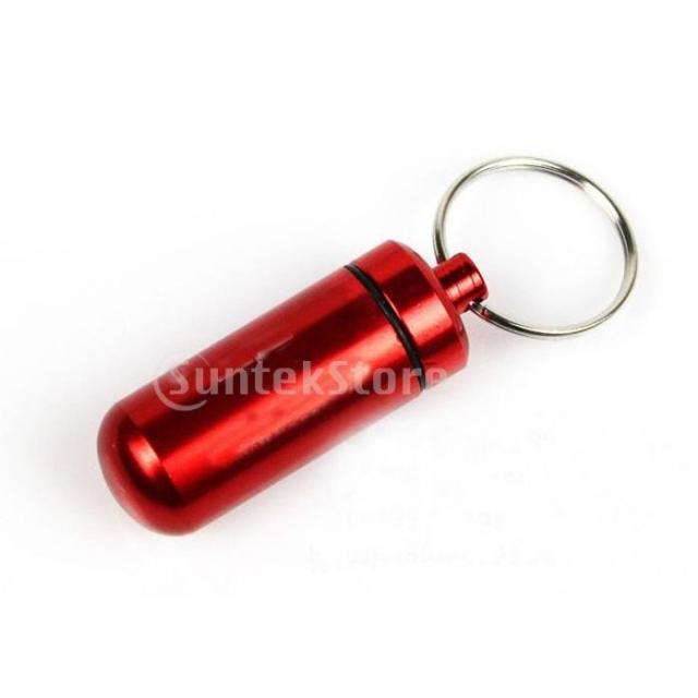 携帯 ピルケース 薬 ケース 薬入れ キーホルダー アルミ合金防水 アウトドア (レッド)