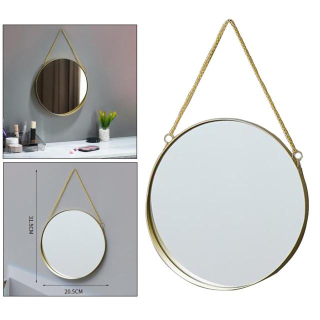 チェーン付き壁掛けミラーベッドルームゴールドフレームホームバスルームデコレーションS