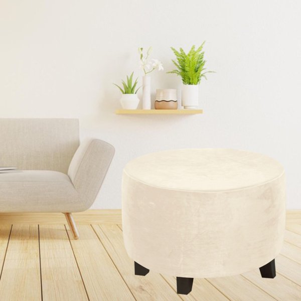 直径48-55cmベージュのラウンドオットマンスリップカバーフットレストカバー