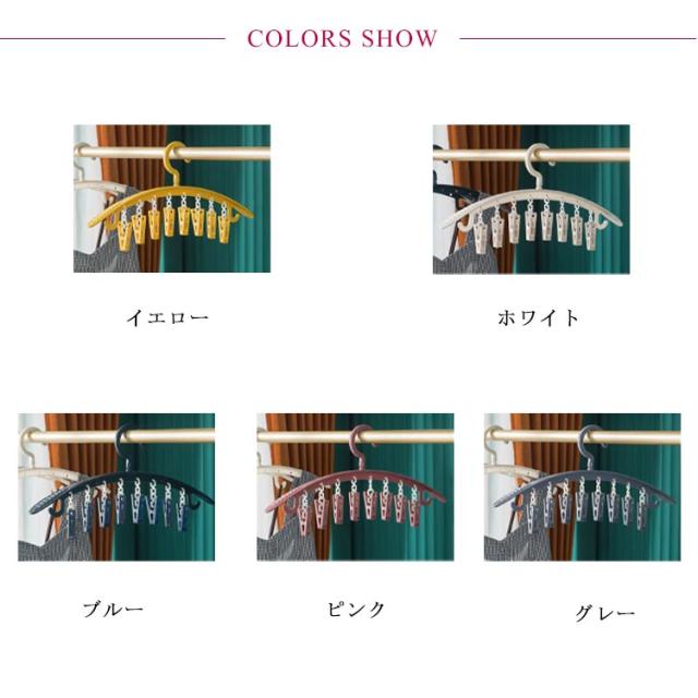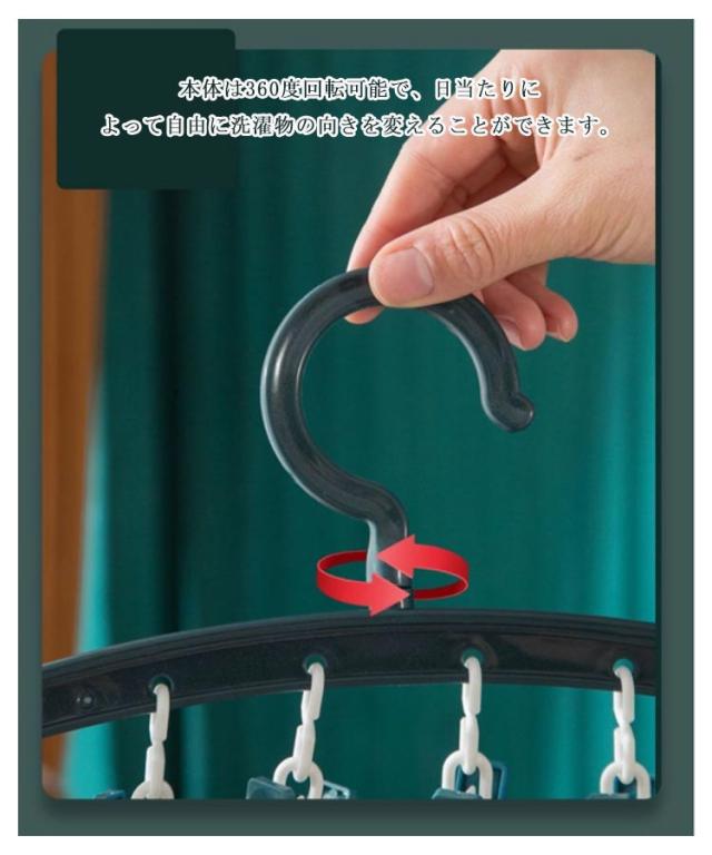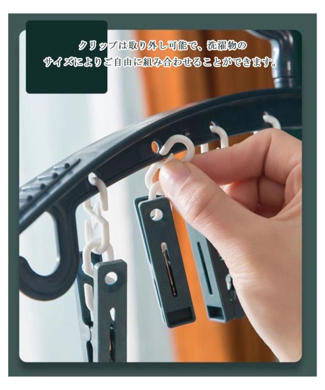 | クラシックのピンチハンガーよりもっと省スペース! クリップは取り外し可能で、洗濯物のサイズによりご自由に組み合わせることができます。 日常の服や肩紐が付いている洋服も掛けることができます。 ハンガーの肩部分は幅広となっており、服が型崩れしにくい設計になっています。 本体は360度回転可能で、日当たりによって自由に洗濯物の向きを変えることができます。 | |