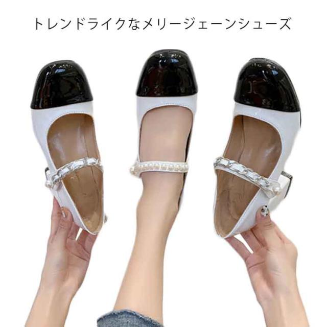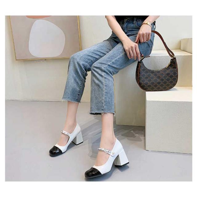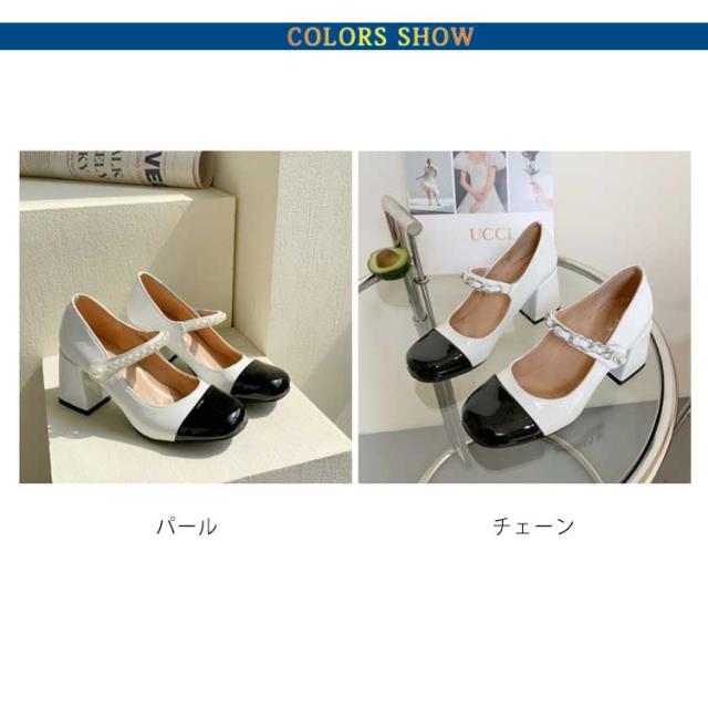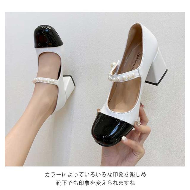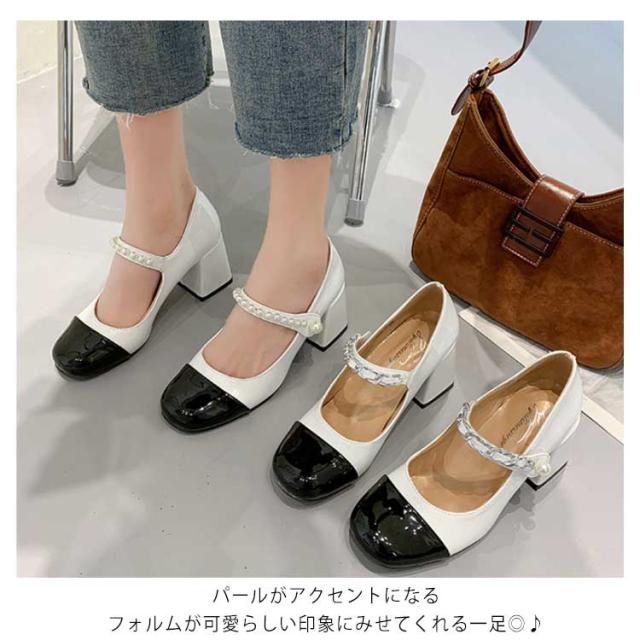 パンプス ローファー ラウンドトゥ パール 太ヒール ハイヒール ストラップ 厚底 ベルト シューズ メリージェーン レディース 靴 安定感 歩きやすい 疲れにくい シンプル チャンキー 低身長コーデ 通学 通勤 学生 大