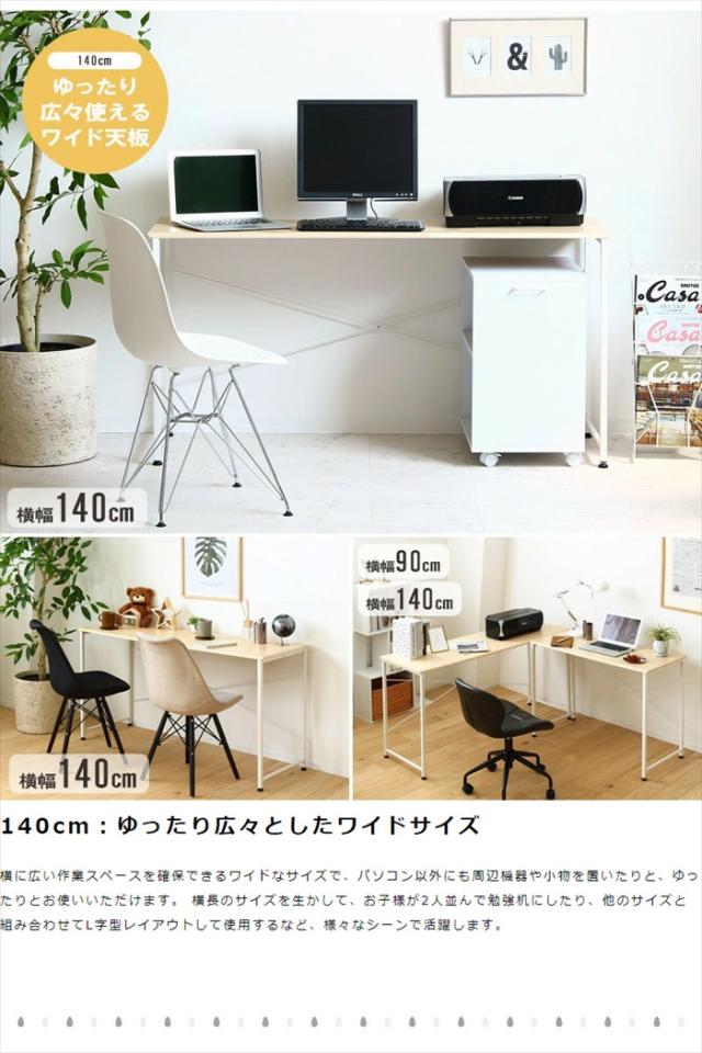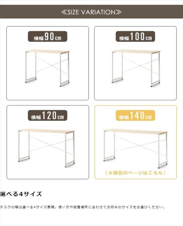 | 使い方に合わせて選べる豊富なサイズバリエーション。 コンパクトに使いたい方、ゆったり広々とした作業スペースが欲しい方、お客様のご要望に応じて選べる横幅90cm/100cm/120cm/140cmの4サイズをラインナップ。 使い方や置き場所によってぴったりのサイズが選べるので、無駄なスペースを生まず空間を有効にお使いいただけます。 幅140cmタイプ:ゆったり広々としたワイドサイズ! 横に広い作業スペースを確保できるワイドなサイズで、デスクワークが楽々。 パソコン以外にも周辺機器や小物を置いたりと、ゆったりとお使いいただけます。 横長のサイズを生かして、お子様が2人並んで勉強机にしたり、他のサイズと組み合わせてL字型レイアウトして使用するなど、様々なシーンで活躍します。 |