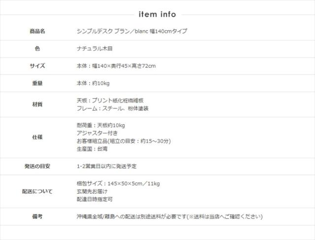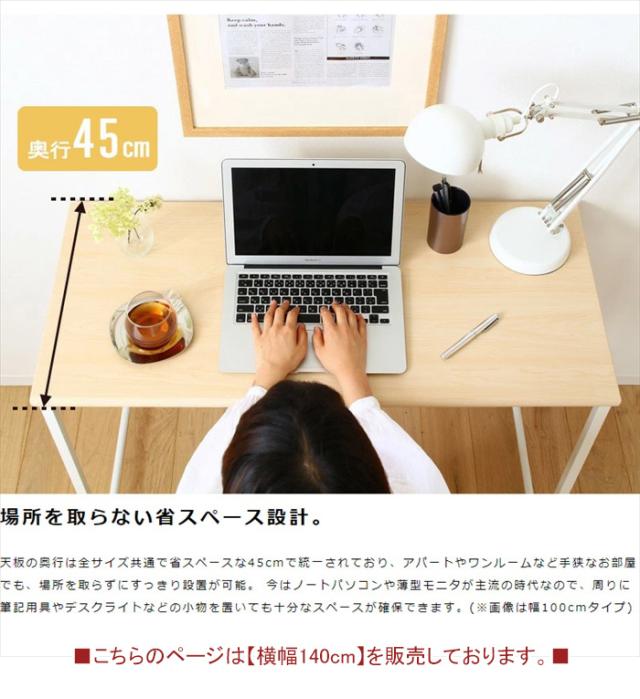 | シンプルデスク ブラン[blanc] ● 幅90cm×奥行45cm ● 幅100cm×奥行45cm ● 幅120cm×奥行45cm ● 幅140cm×奥行45cm ● 幅160cm×奥行45cm ● 幅180cm×奥行45cm ※このページは[幅140cm×奥行45cm]を販売しております。 |