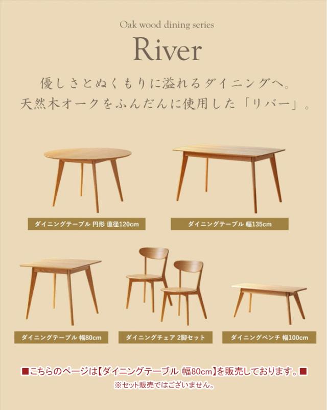 | ダイニング家具シリーズ River/リバー ● ダイニングテーブル 幅80cm ● ダイニングテーブル 幅135cm ● 円形ダイニングテーブル 120cm ● ダイニングチェア 2脚セット ● ダイニングベンチ ※このページは[ダイニングテーブル 幅80cm]を販売しております。 |