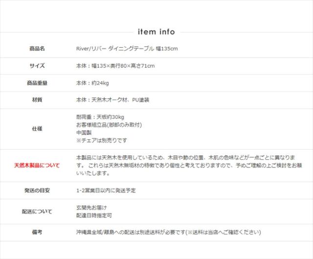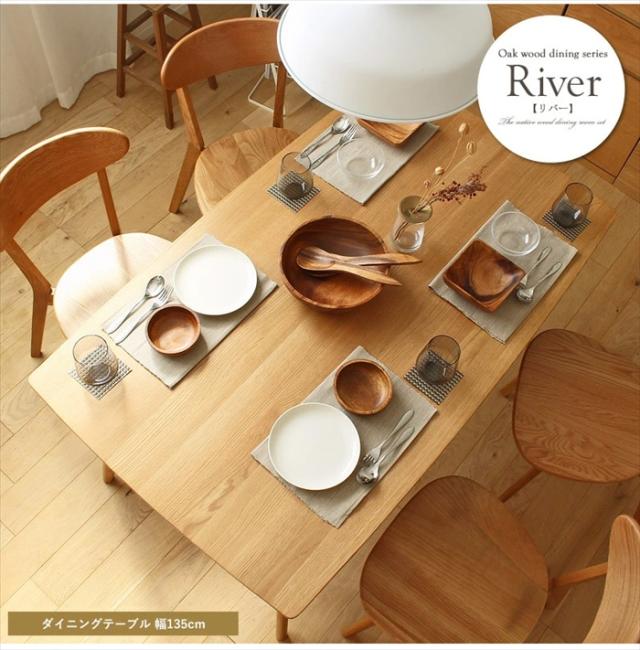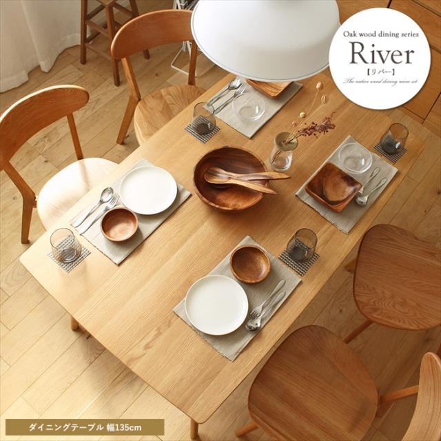 | ダイニング家具シリーズ River/リバー ● ダイニングテーブル 幅80cm ● ダイニングテーブル 幅135cm ● 円形ダイニングテーブル 120cm ● ダイニングチェア 2脚セット ● ダイニングベンチ ※このページは[ダイニングテーブル 幅135cm]を販売しております。 |